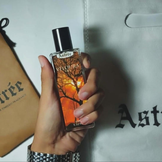 It opens with a bright and sparkling blend of lemon, orange, and bangamor, creating a zesty, uplifting first impression. The heart unfolds into a deliciously fruity, floral, and powdery bouquet, centered around radiant jasmine, evoking femininity and grace. As it settles, Veloura leaves behind a smooth, lingering trail of vanilla, amber, and musk — warm, cozy, and undeniably captivating.